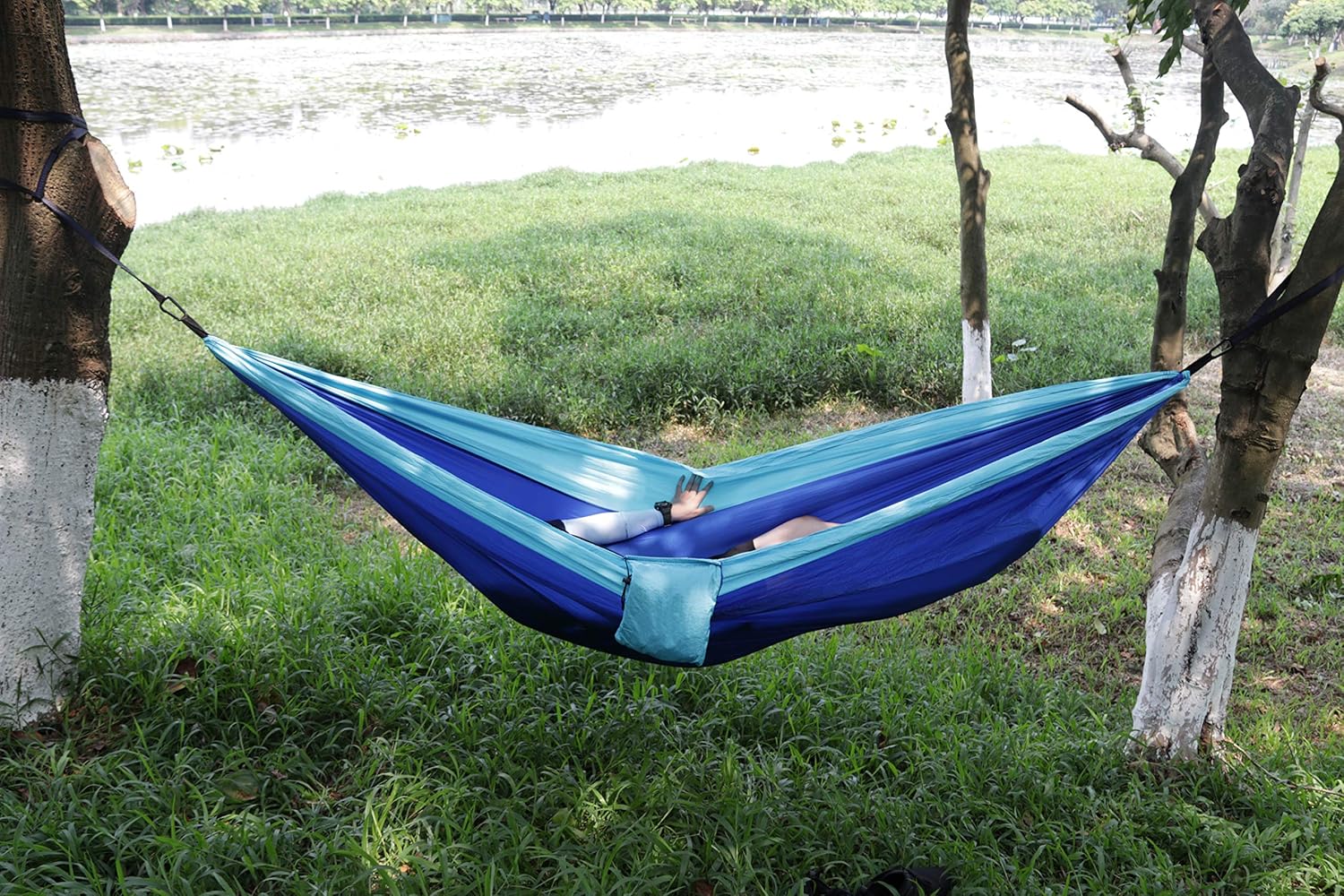 Amazon Com Aodoer Camping Hammock Travel Hammock With 2 Tree Straps Double Hammock Durable Nylon Parachute Portable Hammock For Outdoor Hiking Backpacking Yard Yellow Blue Kitchen Dining